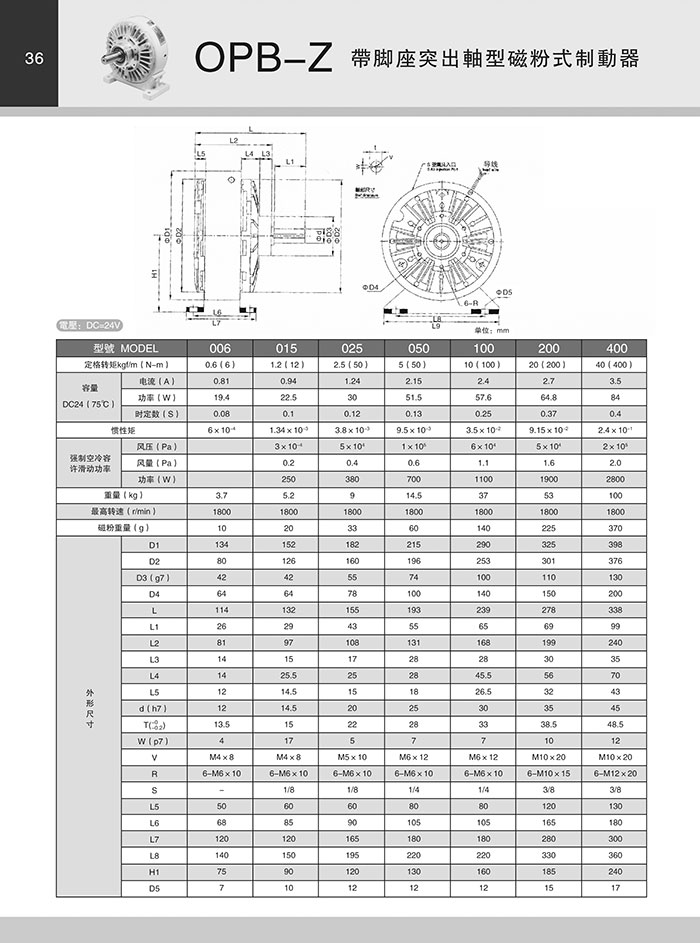帶腳座突出軸型磁粉式…